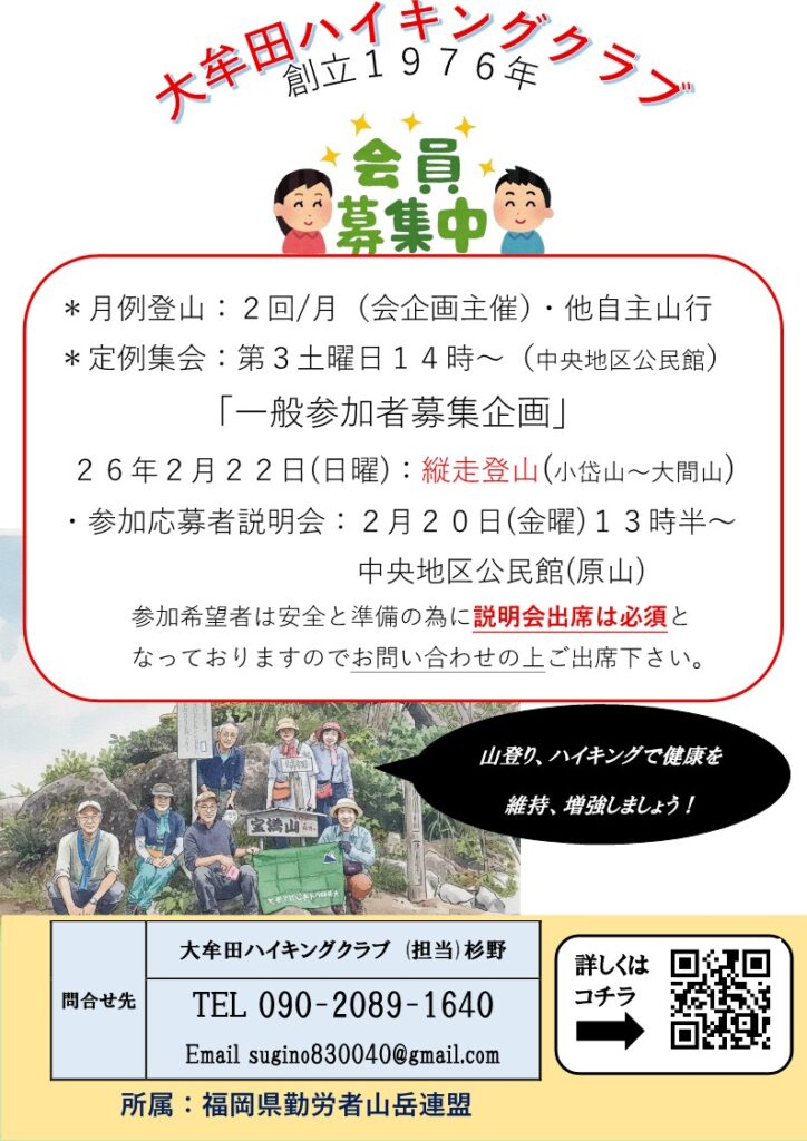 公開山行 2026年2月22日(日)小岱山~大間山縦走 参加者募集