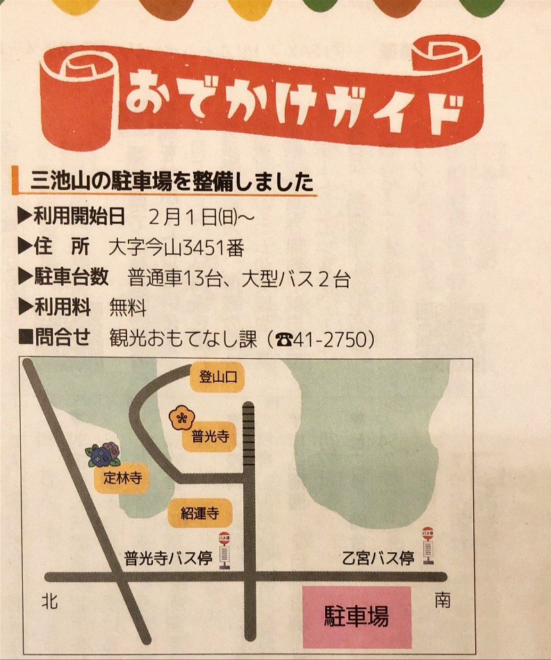 【2月1日(日)三池山駐車場が完成しました】